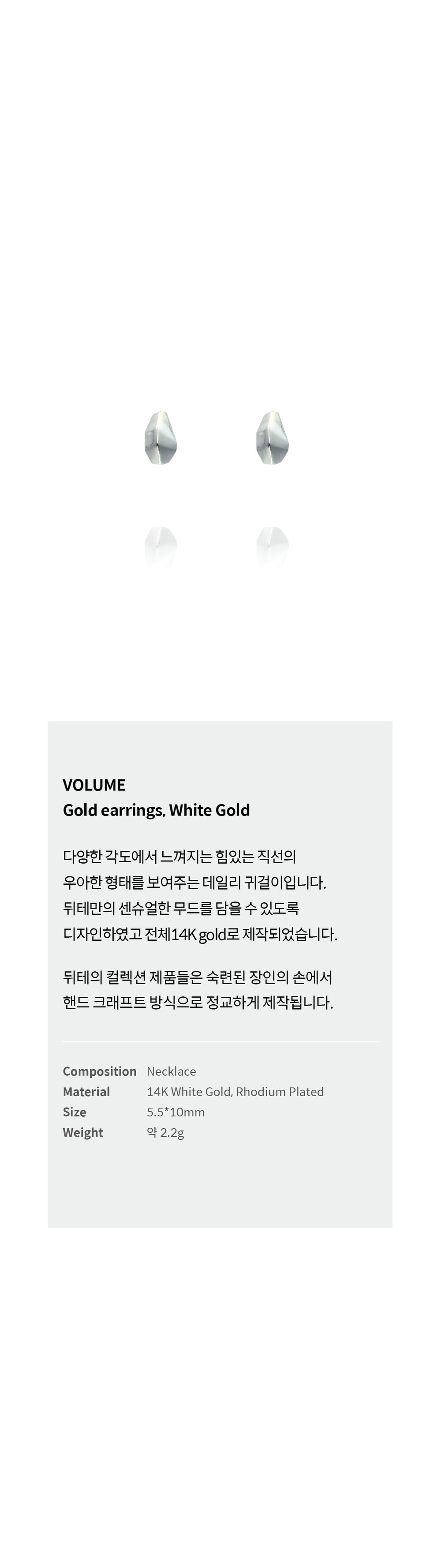 다양한 각도에서 느껴지는 힘있는 직선의 우아한 형태를 보여주는 데일리 귀걸이입니다.
